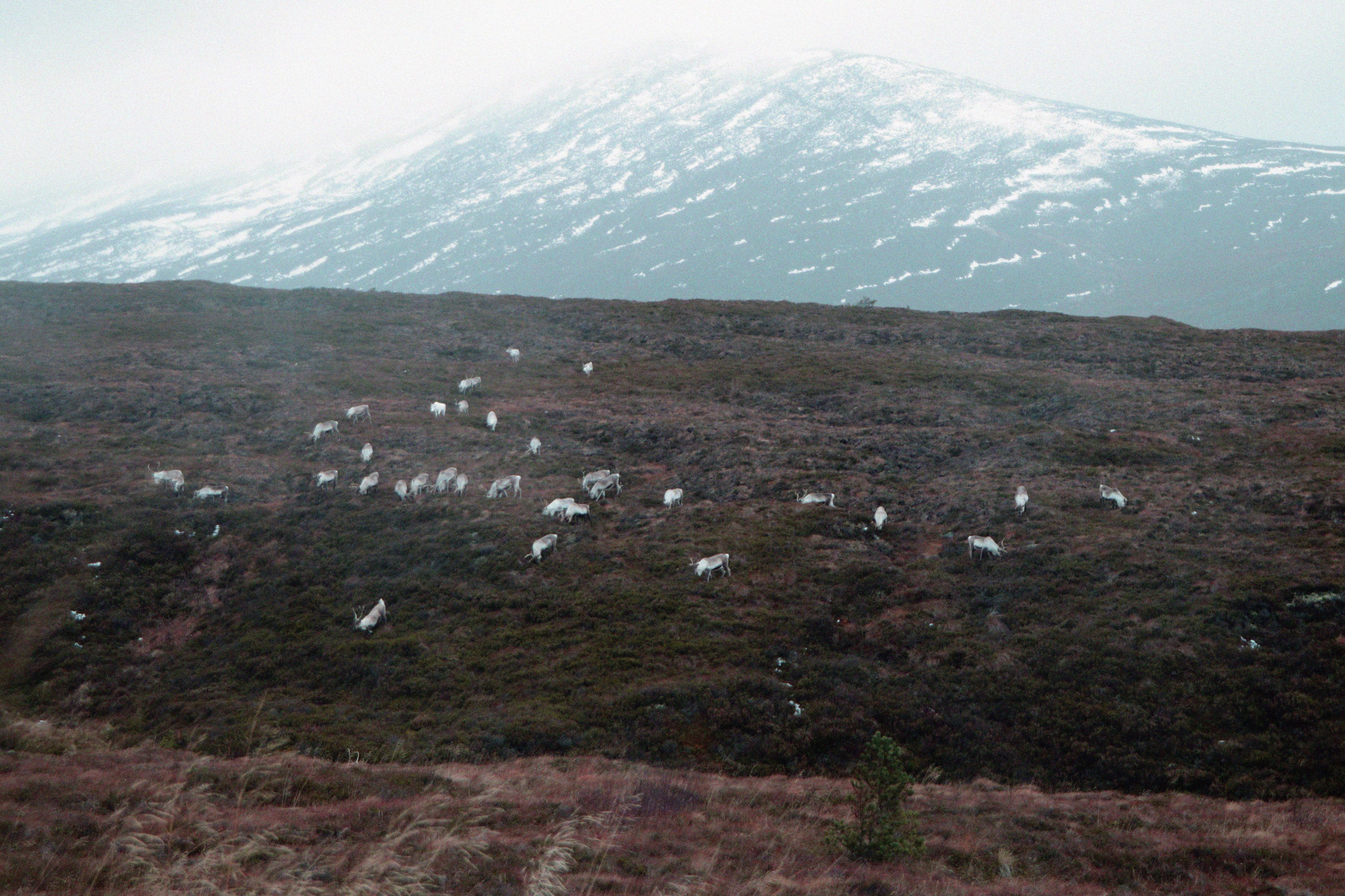 The Cairngorm Reindeer herd, introduced into the expansive landscapes of the mountain park in 1952 by Sami herder Mikel Utsi - are the UK’s only herd of wild, free roaming reindeer. After travelling to Scotland, Mr. Utsi found the lichen-rich landscapes of the Cairngorms were similar to his native home of northern Sweden and suspected that reindeers would thrive there. After a few experimental years, Mr. Utsi and his wife Dr. Lindgren successfully introduced a herd of reindeer to the slopes of the Cairngorms. The herd now numbers around 150, who roam the wild mountain fells across the Glenlivet estate.